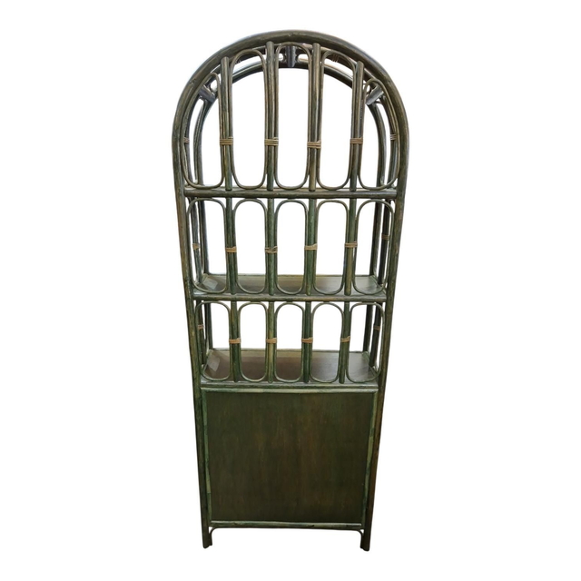 Très jolie bibliothèque vintage en rotin et cannage. 3 étagère + 1 placard avec 1 étagère.