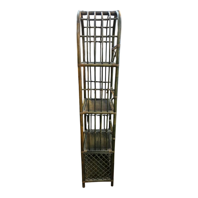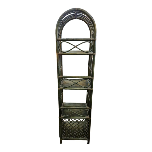 Jolie petite bibliothèque vintage en rotin. En très bon état malgré quelques traces d'usures.