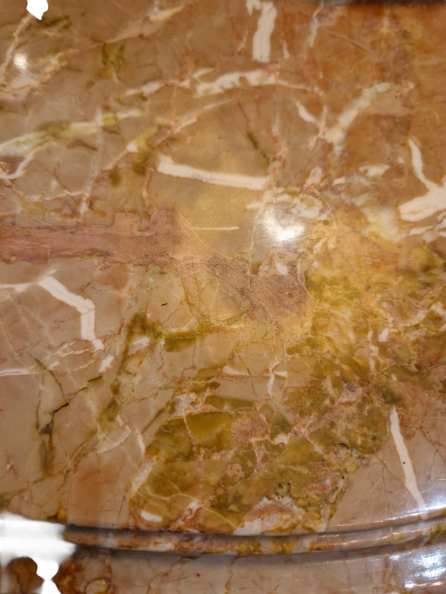 Plateau en marbre rose + blanc + vert de 3 cm d'épaisseur.