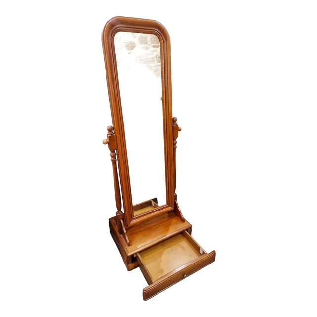 Magnifique miroir psyché en merisier avec un grand tiroir. Très lourd. Fabrication Française
