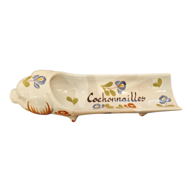 Porte saucisson en faïence de Desvres France. Forme de cochon fait à la main.