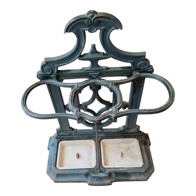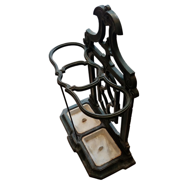 Magnifique porte parapluie double en fonte. Très lourd et robuste. En très bon état malgré quelques traces d'usures.