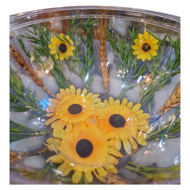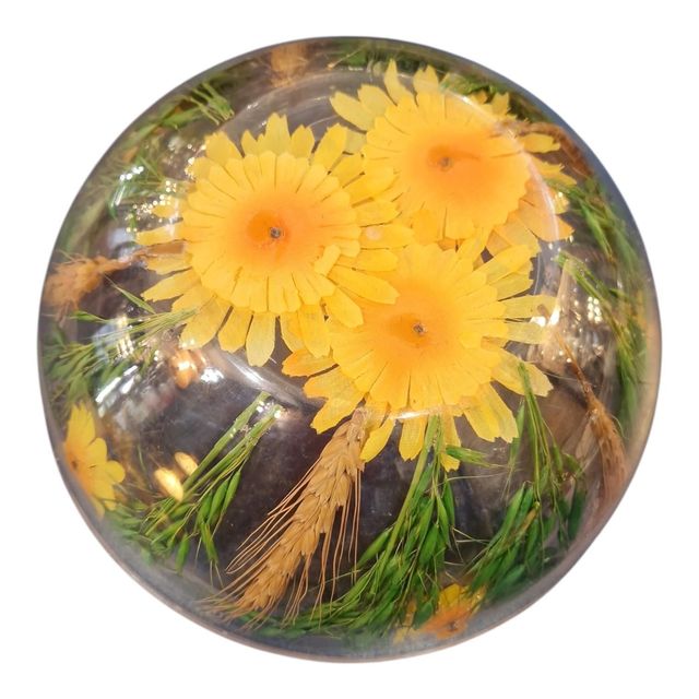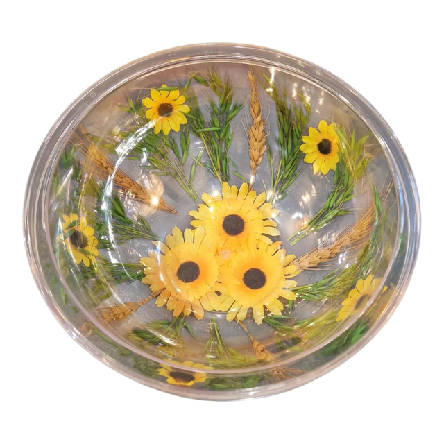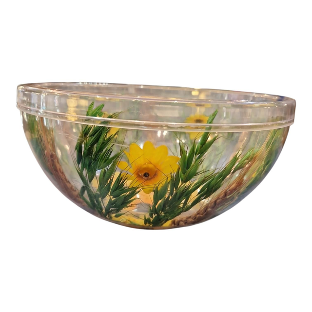 Saladier vintage en plastique et fleurs synthétiques.